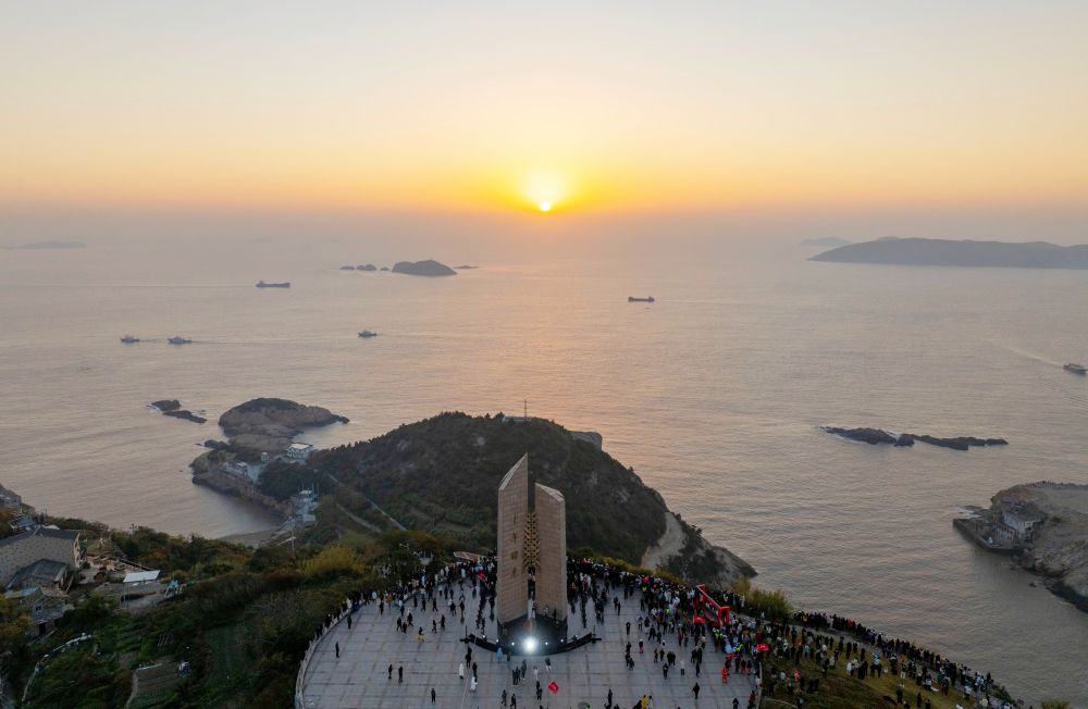 1月1日清晨,浙江溫嶺石塘鎮迎來日出。(徐偉(wei) 傑 攝)