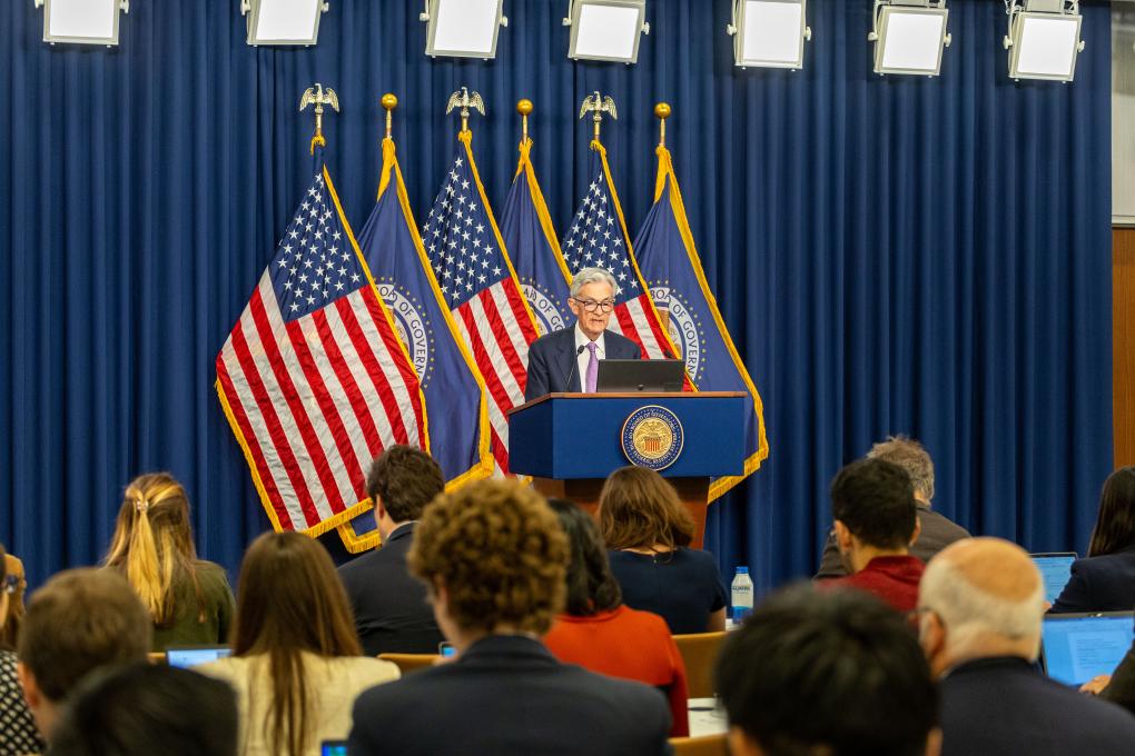 2024年9月18日,美國聯邦儲(chu) 備委員會(hui) 主席鮑威爾在華盛頓出席記者會(hui) 。新華社記者胡友鬆攝