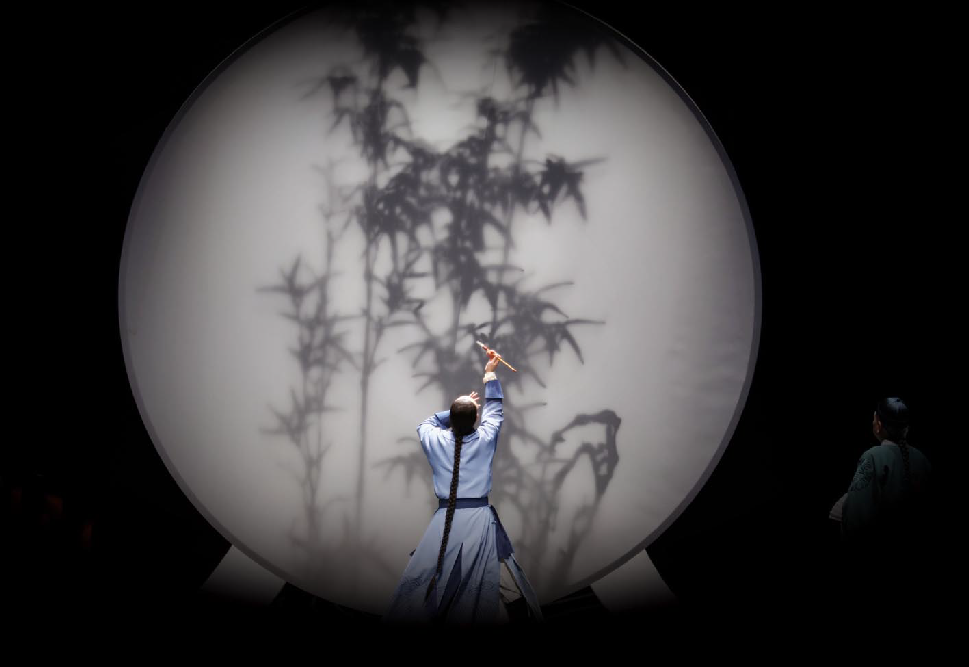 舞台上,古琴與(yu) 琵琶的悠揚旋律仿若一陣清風,輕輕拂開曆史的畫卷,清代揚州的風情萬(wan) 種如詩如畫般徐徐展開。鄭板橋筆下的竹、蘭(lan) 、石化作他性格的三種特質,生動地展現了為(wei) 官之德、書(shu) 生之質、為(wei) 民之心,以及他對生命價(jia) 值的執著堅守,深深地震撼著每一位觀者的心靈,讓他們(men) 沉浸其中,心潮澎湃。