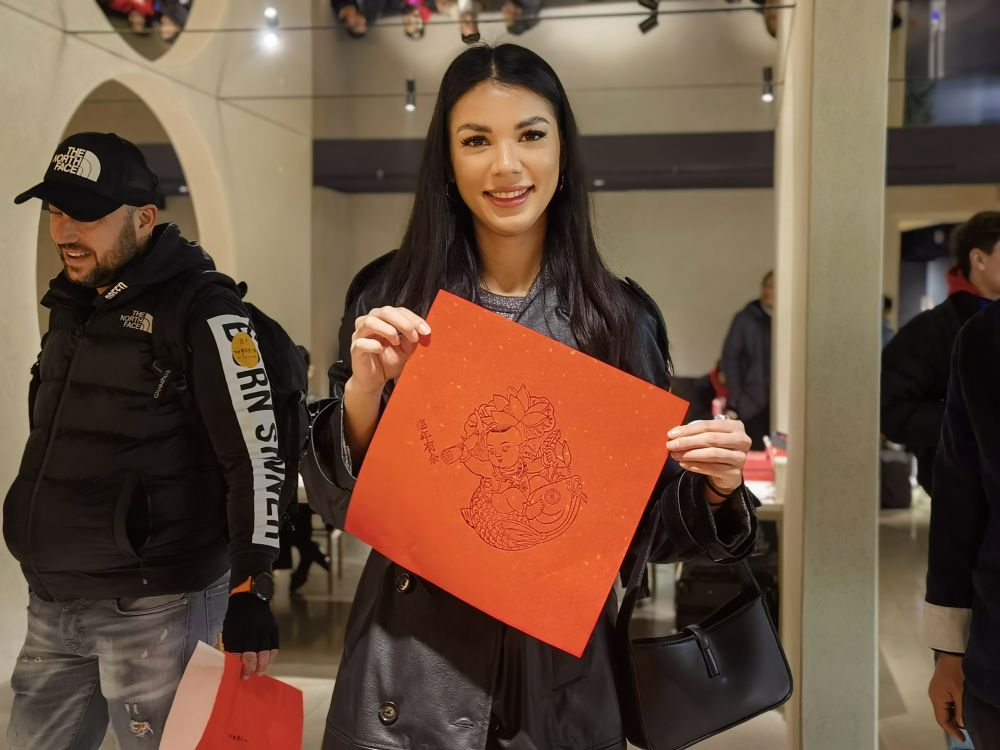 2024年12月31日晚,斯洛伐克遊客在“上海新春第一遊”體(ti) 驗非遺拓印。新華社記者 陳愛平 攝