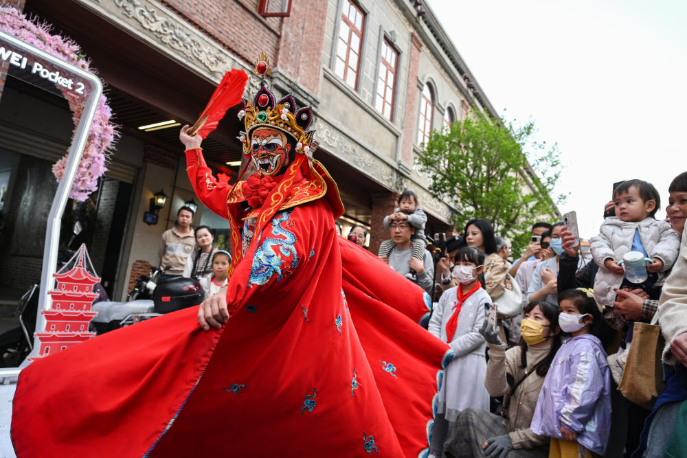 在泉州中山路,遊客觀看變臉表演。新華社記者 周義(yi) 攝