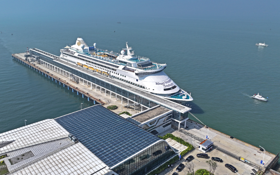 圖為(wei) 2024年11月15日在北部灣國際郵輪母港拍攝的即將執行首航任務的“藍夢之歌”號郵輪。新華社發(無人機照片,周華攝)。