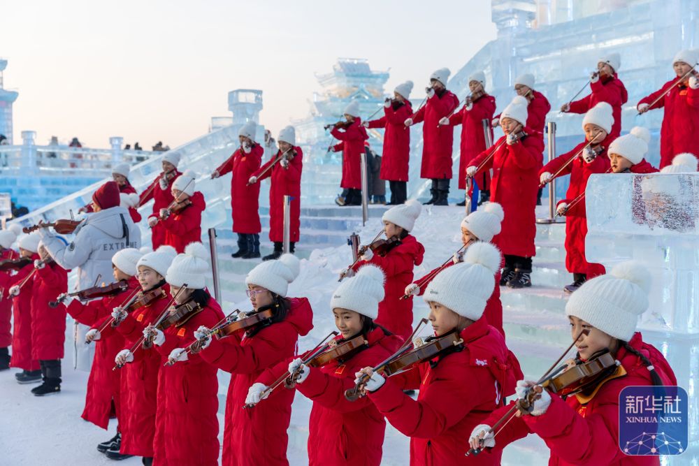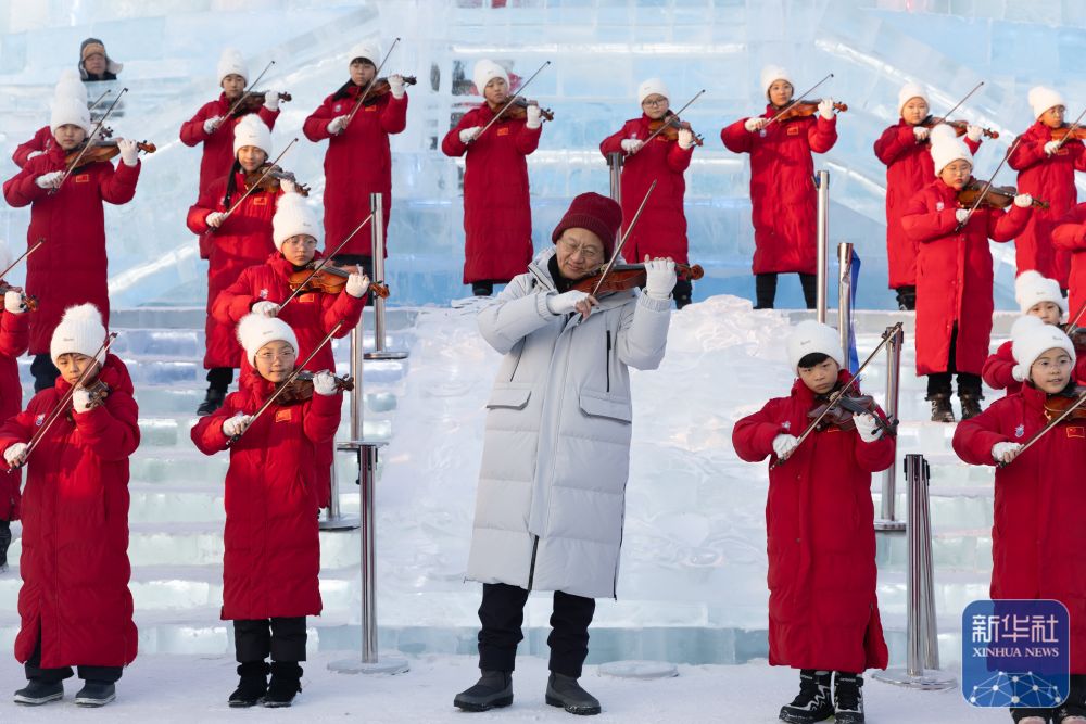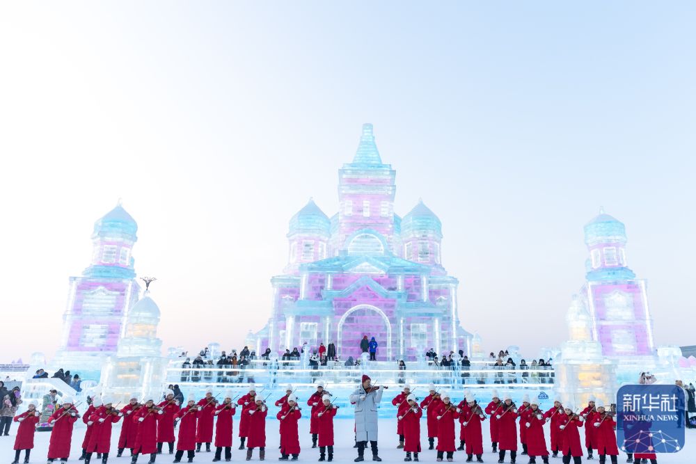 當日,哈爾濱冰雪大世界園區上演音樂(le) “快閃”,為(wei) 即將到來的亞(ya) 冬會(hui) 助力。