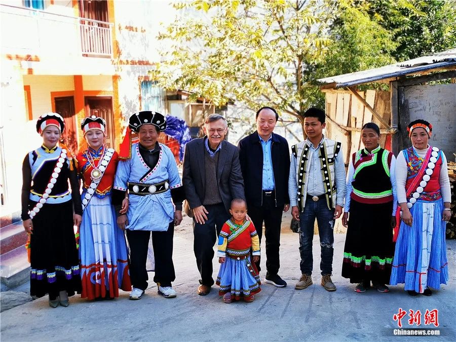 2019年第二次環遊中國期間,潘維廉(左四)在雲(yun) 南與(yu) 傈僳族居民在一起。受訪者供圖