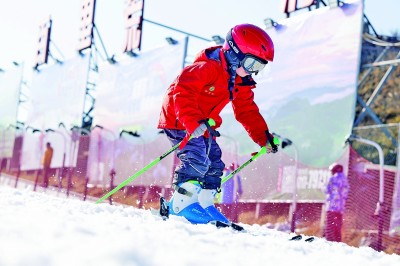 小朋友在湖北省宜昌市夷陵區百裏荒滑雪場體(ti) 驗滑雪。新華社發