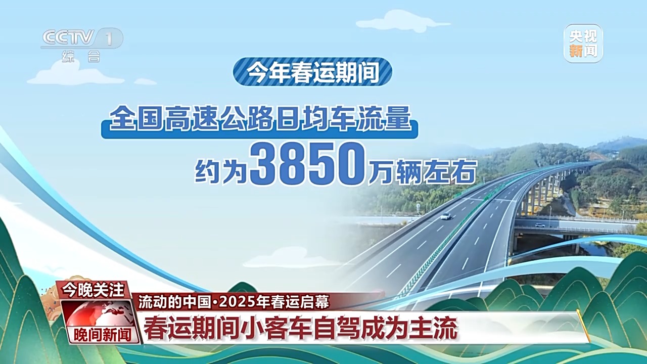 公路方麵,春運期間舉(ju) 家返鄉(xiang) 出行多,今年春運期間全國高速公路日均車流量約為(wei) 3850萬(wan) 輛左右。長途和中短途出行交織,出行目的地多樣化,小客車自駕成為(wei) 主流,其中新能源車輛持續增長。