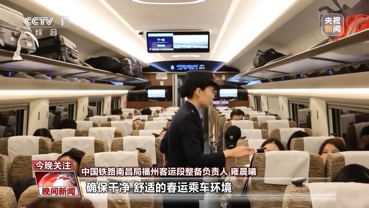 中國鐵路南昌局福州客運段整備負責人 雍晨曦:今年春運,客流高峰日預計出現在正月初八。為(wei) 此,我們(men) 準備了25萬(wan) 餘(yu) 件高溫熨燙消毒臥具和頭靠巾,增配了23萬(wan) 餘(yu) 件滿足旅途需求的衛生紙等消耗品,確保幹淨、舒適的春運乘車環境。