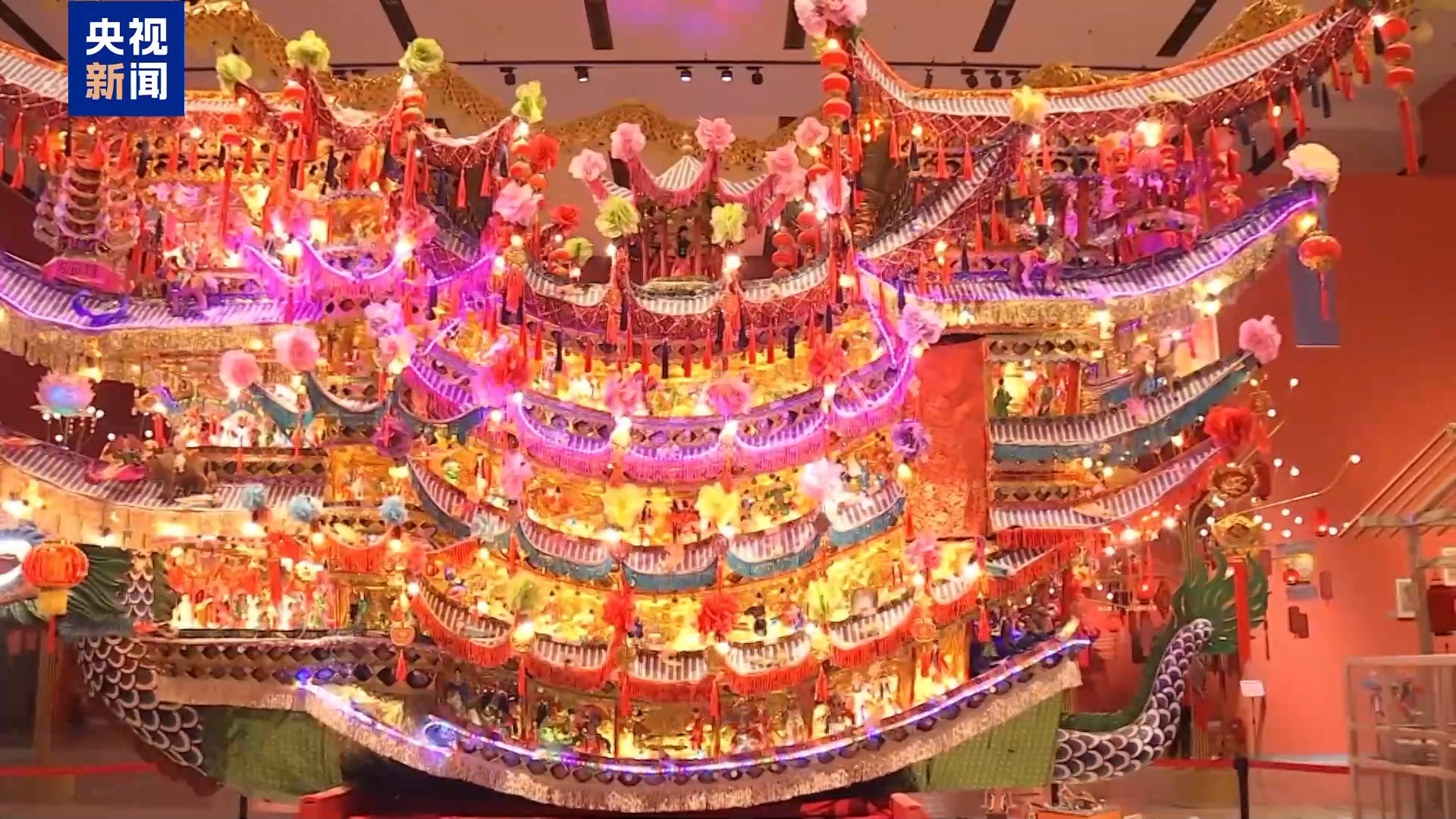 整個(ge) 首飾龍燈製作工藝複雜,集木工、油彩、紙紮、龍燈、刻紙等工藝於(yu) 一體(ti) 。依靠內(nei) 部的木製齒輪裝置驅動,龍船能搖頭擺尾,船上幾百個(ge) 形態各異的人偶也能動起來。