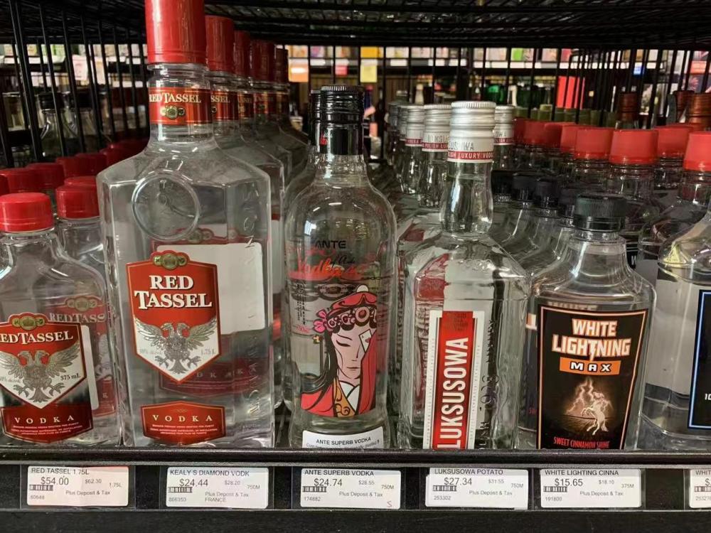 加拿大超市貨架上的中國產(chan) 國粹臉譜係列伏特加。受訪者供圖