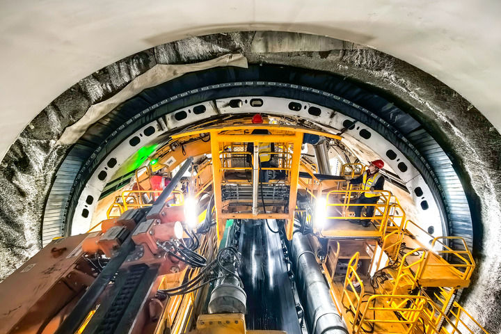 這是2025年1月5日拍攝的引江補漢工程首台雙護盾硬岩掘進機“江漢平安號”掘進施工現場。新華社記者 肖藝九 攝