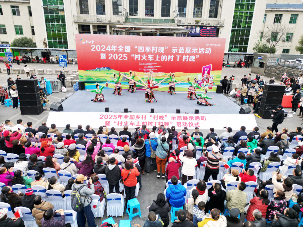 新鮮的農(nong) 產(chan) 品、喜慶的車廂、特色的民族歌舞、精美的非遺展示……1月18日,2025年全國鄉(xiang) 村“村晚”示範展示活動暨“村火車上的村T村晚”啟動儀(yi) 式,在貴陽開往玉屏的5640次“慢火車”上舉(ju) 行。