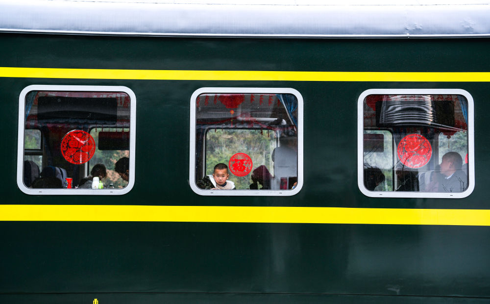 1月18日,在滬昆鐵路六個(ge) 雞火車站,沿途村民乘坐5640次列車出行。新華社記者 楊文斌 攝