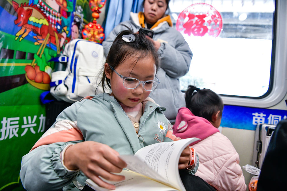 1月18日,一名小女孩在5640次列車上看書(shu) 。新華社記者 楊文斌 攝