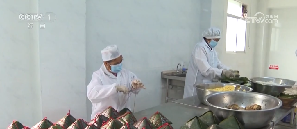 在廣西賓陽,各年貨加工廠抓緊時間製作“甘棠三寶”,也就是大粽、扣肉和粉利。將蒸過的粽葉擺放好,按順序加入餡料,壓實包好後,再一起放入大鍋中進行熬煮,這就是大粽。將精選的五花腩肉及相關(guan) 配料進行醃製、油炸,這就是扣肉。蒸熟的粉利切塊,淋上花生油和醬油,加一勺酸辣醬就可享用。