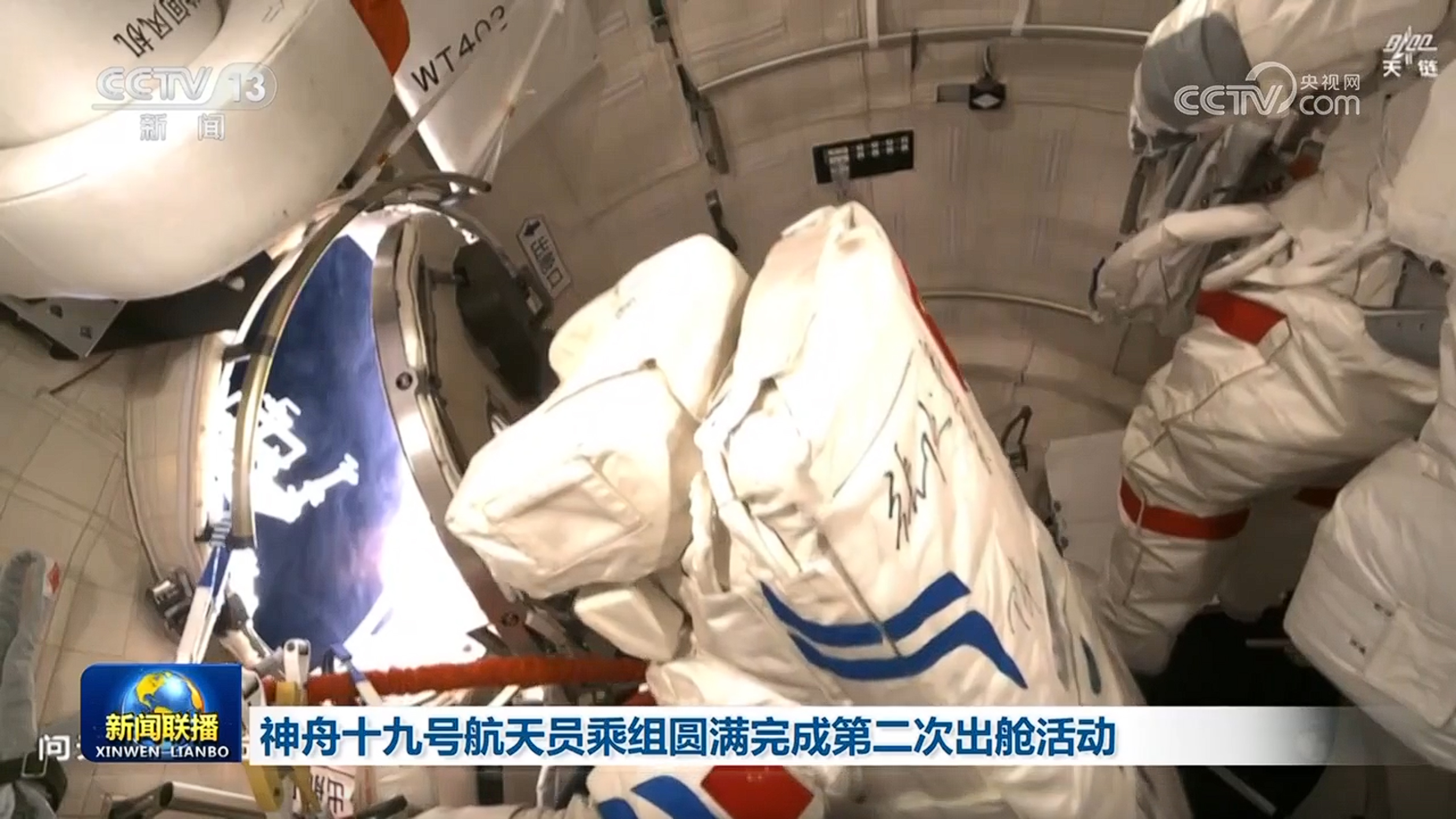 1月21日1時12分,經過約8.5小時的出艙活動,神舟十九號乘組航天員蔡旭哲、宋令東(dong) 、王浩澤密切協同,圓滿完成第二次出艙活動。