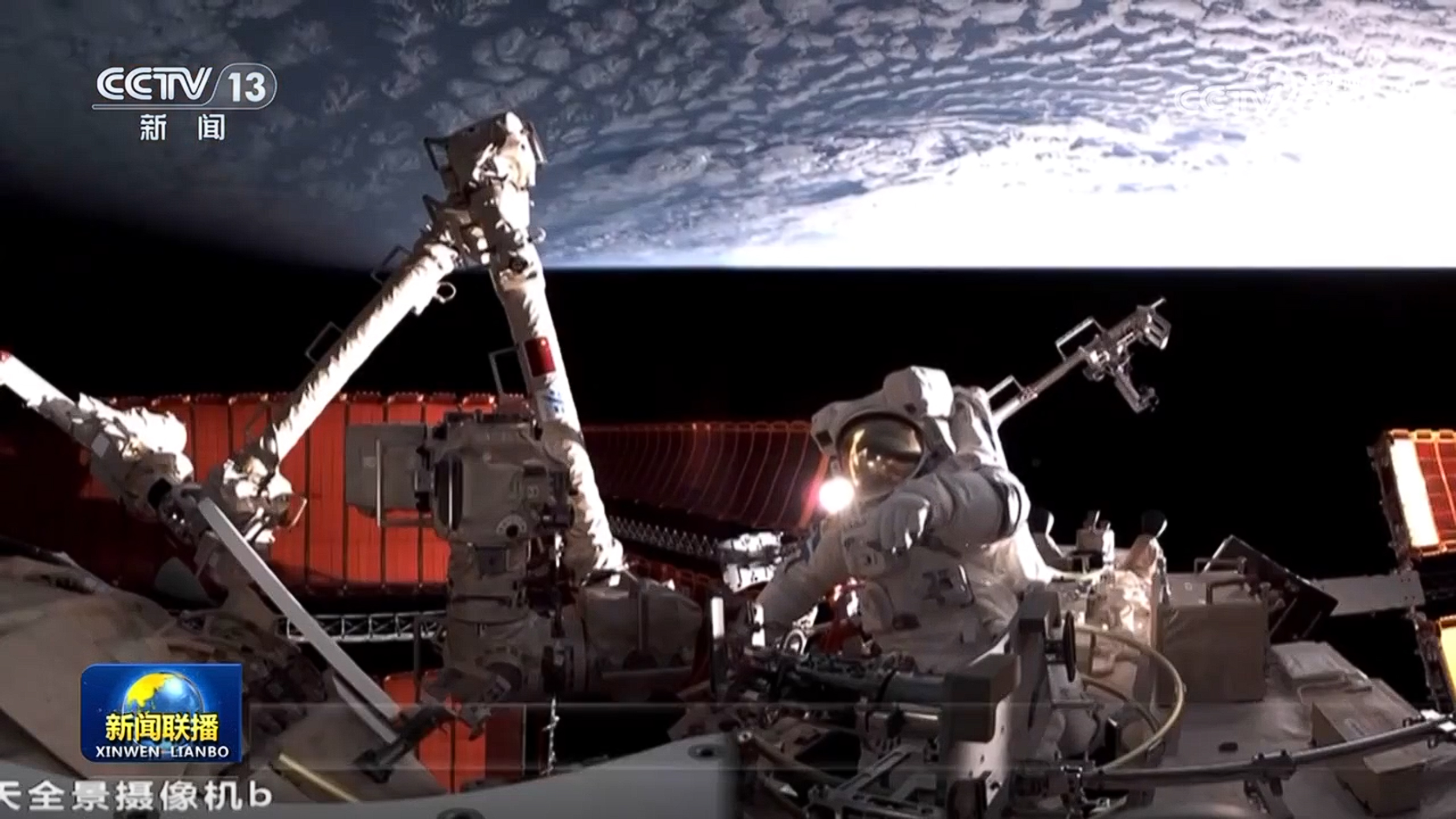 在空間站機械臂和地麵科研人員的配合支持下,航天員乘組完成了空間站空間碎片防護裝置安裝、艙外設備設施巡檢等任務。今天1時12分,經過約8.5小時的出艙活動,兩(liang) 名出艙航天員安全返回問天實驗艙。