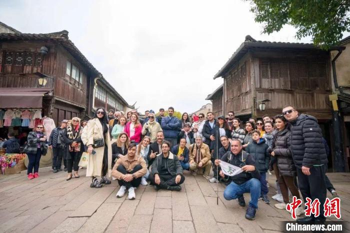 外國遊客“打卡”烏(wu) 鎮景區。桐鄉(xiang) 市委宣傳(chuan) 部供圖