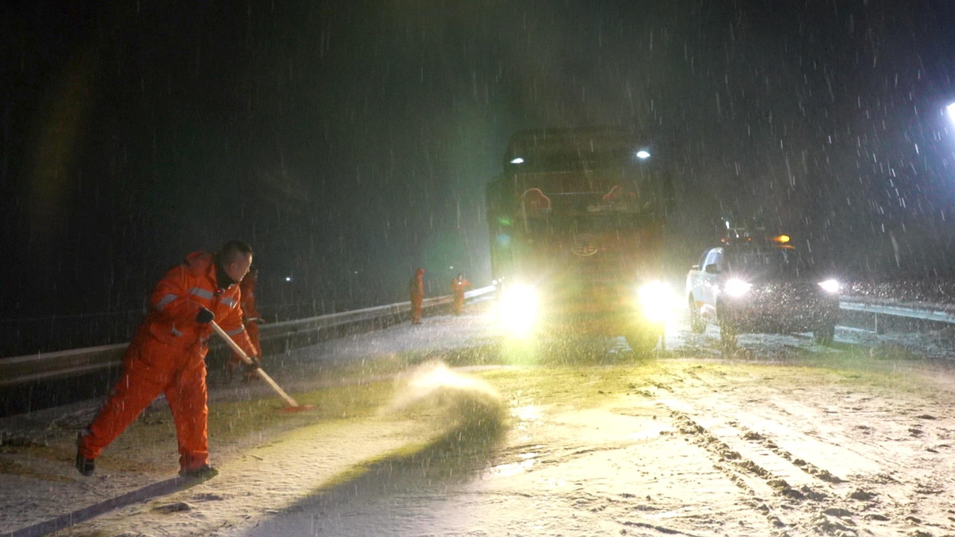 大貨車打滑熄火,記者步行都極易摔倒。23名公路人緊急出動,大型除雪車、破冰車、融雪劑撒布車不間斷作業(ye) 。