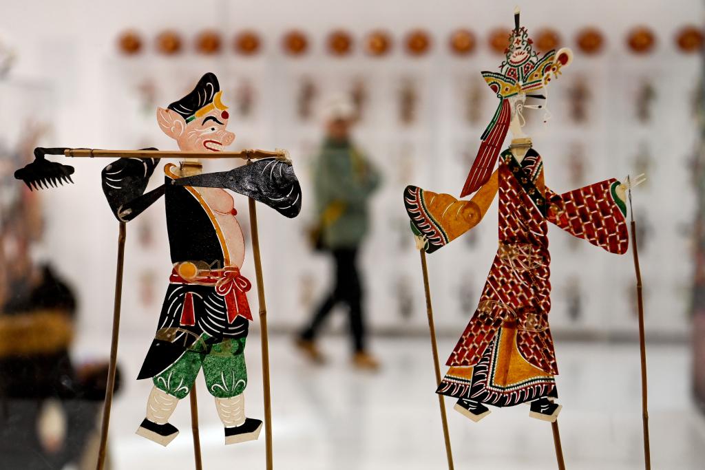 1月7日,遊客在非遺年貨集市上了解皮影技藝。新華社記者 鄒競一 攝