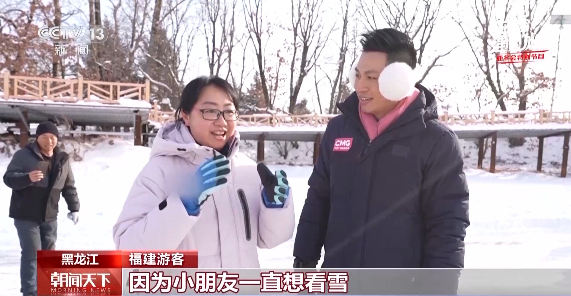 福建遊客:因為(wei) 小朋友一直想看雪,想看真正的雪,他去年就想來結果沒成行,今年就一定要來了,真的很好玩。
