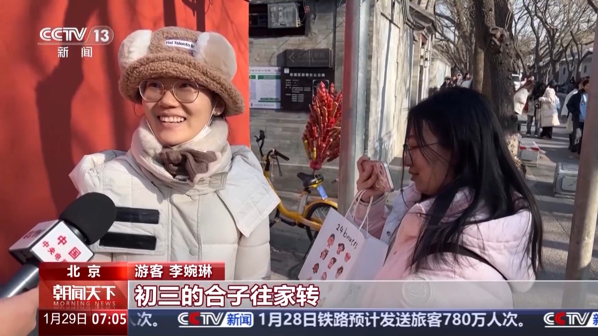 北京遊客 李婉琳:北方就是都會(hui) 有“貼吊錢”的文化。初一的餃子,初二的麵,初三的合子往家轉。