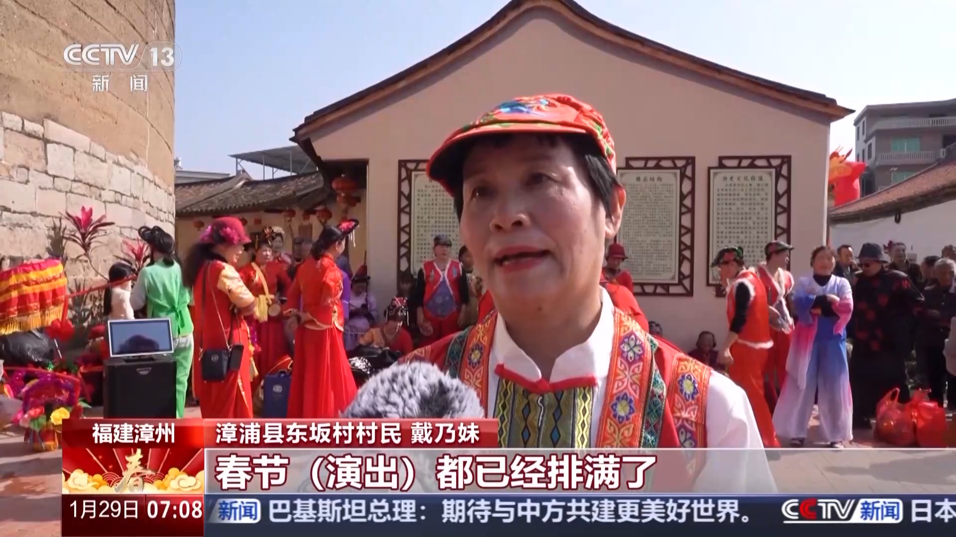 福建漳州漳浦縣東(dong) 阪村村民 戴乃妹:春節演出都已經排滿了,我還有一份工作是演木偶戲給外地的遊客看,再把這些農(nong) 村的活動都搞起來。