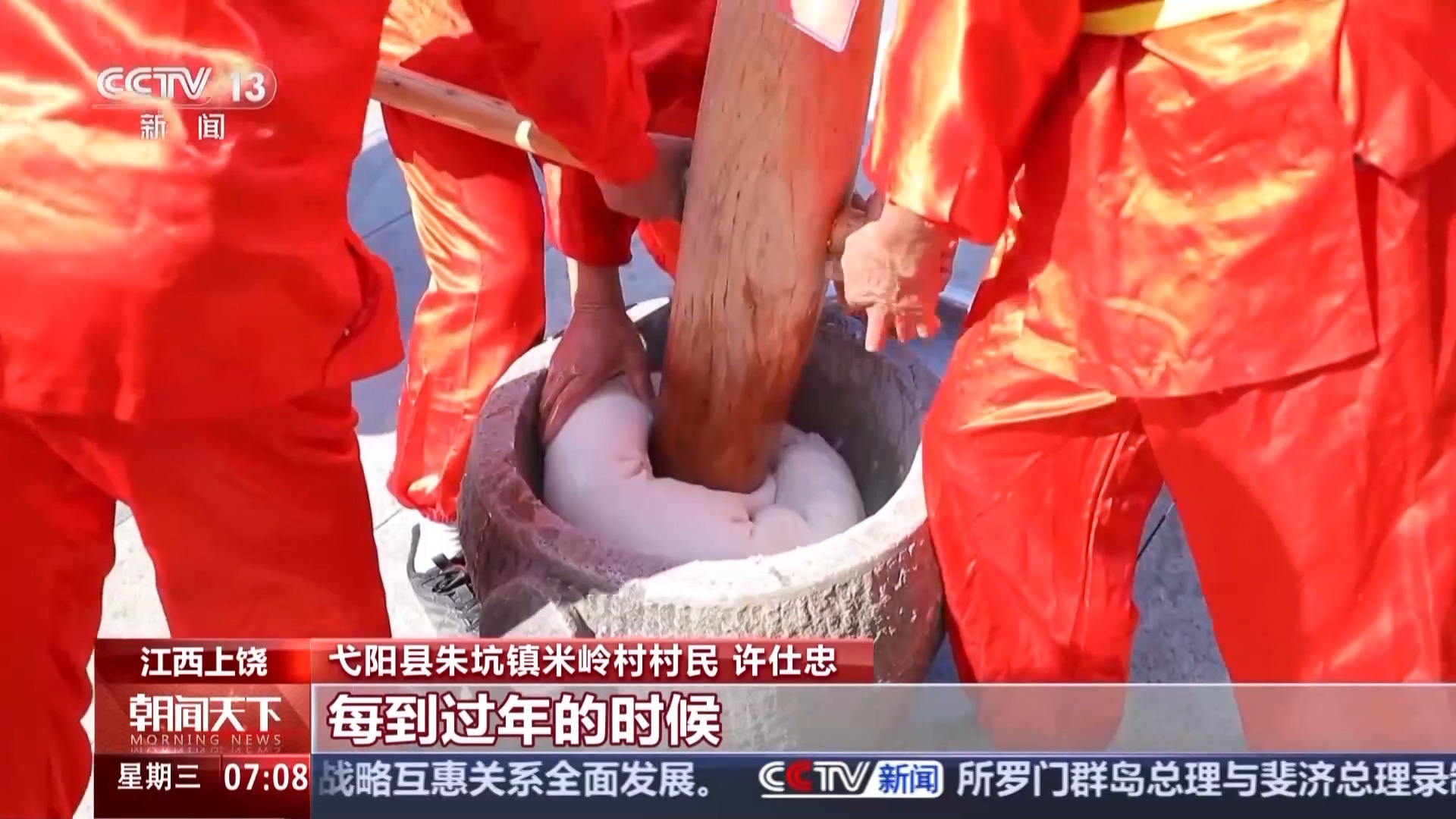 江西上饒弋陽縣朱坑鎮米嶺村村民 許仕忠:我們(men) 弋陽有個(ge) 風俗,每到過年的時候家家戶戶都會(hui) 打點年糕,寓意家庭事業(ye) 步步高。