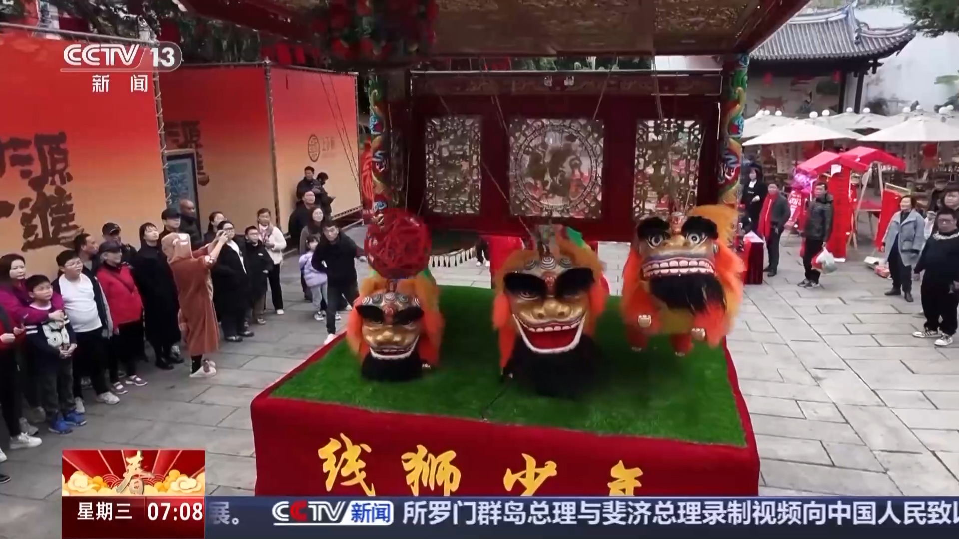 福建寧德霍童鎮興(xing) 賢村少年線獅隊隊長 陳吉宏:線獅,是用繩線去提控獅子的一種表演形態。我們(men) 的獅子表演形態就是母親(qin) 帶著孩子在共同追逐球,實際上是一種表現母愛的環節,那我們(men) 中國的團圓,就是大家聚在一起過春節,就是家家戶戶,團圓圓滿。