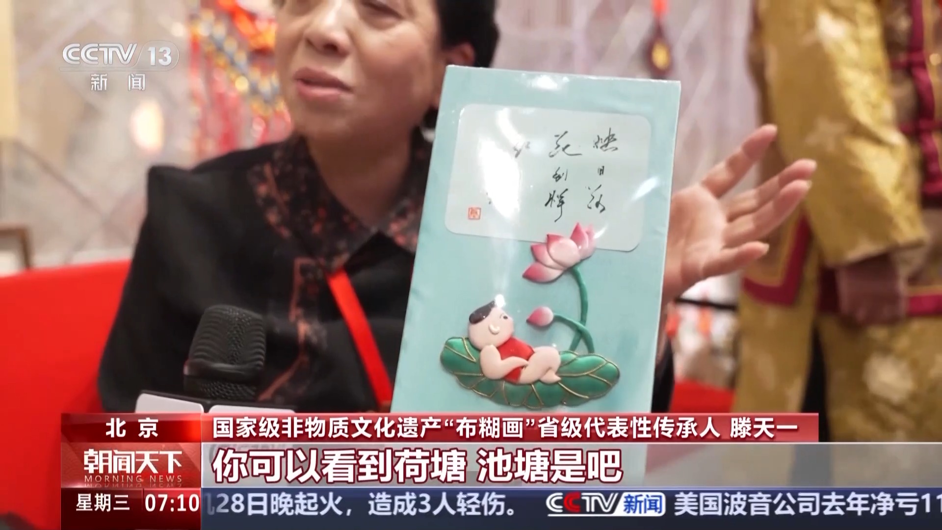 北京國家級非物質文化遺產(chan) “布糊畫”省級代表性傳(chuan) 承人 滕天一:很多手工掛件做完了到不了一分鍾就買(mai) 走了。從(cong) 古到今幾千年了,我們(men) 中國的東(dong) 西到哪兒(er) 你細看,它是有內(nei) 涵的東(dong) 西。比如說我拿了楊萬(wan) 裏的一句詩“映日荷花別樣紅”你可以看到荷塘、池塘是吧,再想到我們(men) 的詩、詩人,它都是有意境的。