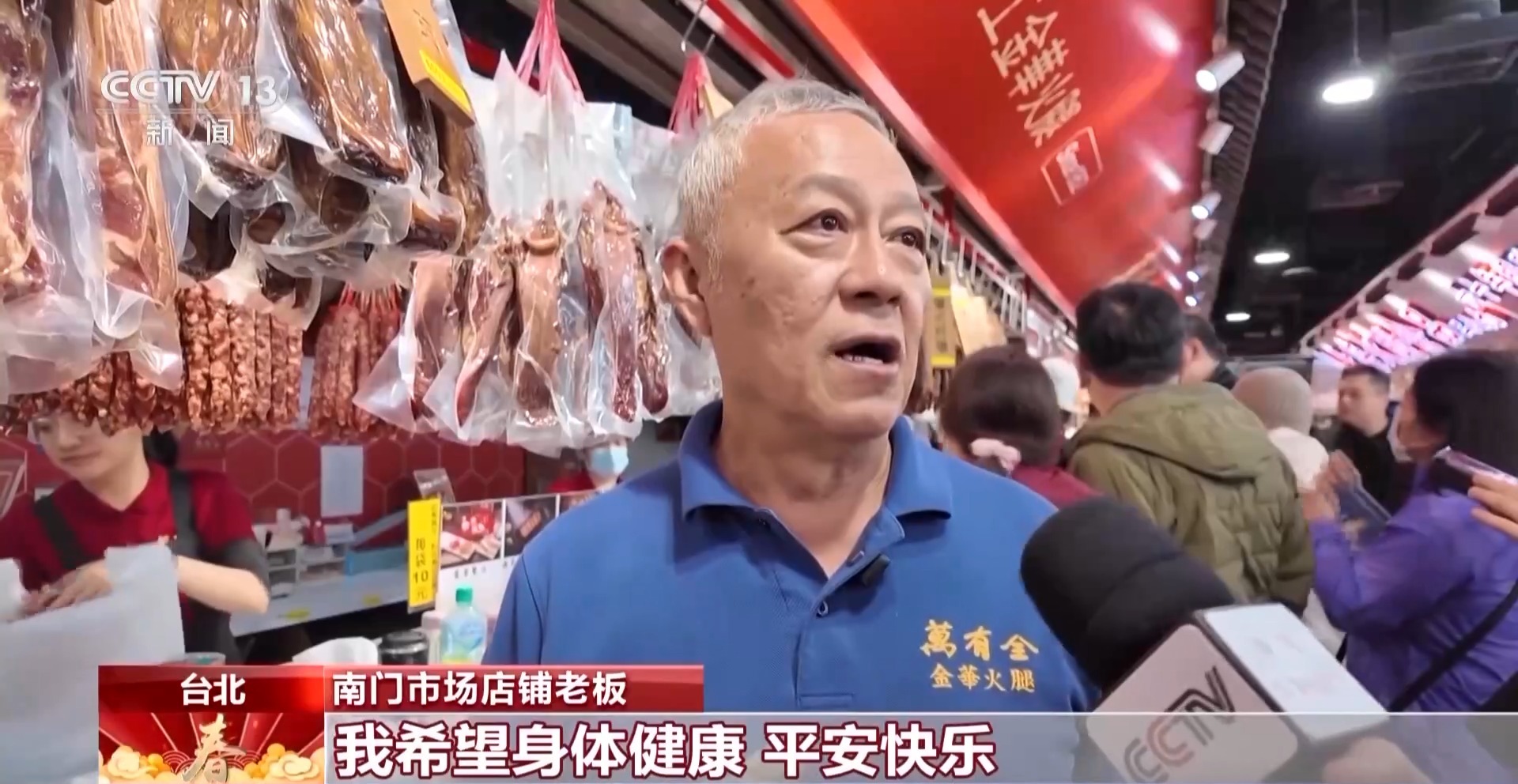 南門市場店鋪老板:我今年正好70歲,我希望身體(ti) 健康,平安快樂(le) ,祝兩(liang) 岸同胞新年快樂(le) 。