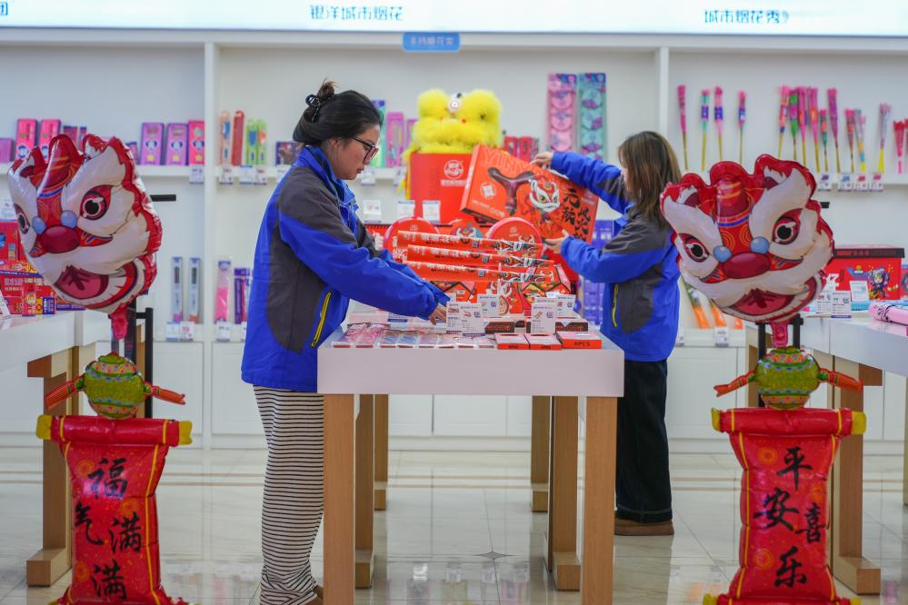 大瑤鎮一家花炮企業(ye) 的員工在整理帶有春節元素的新產(chan) 品。新華社記者 陳澤國 攝