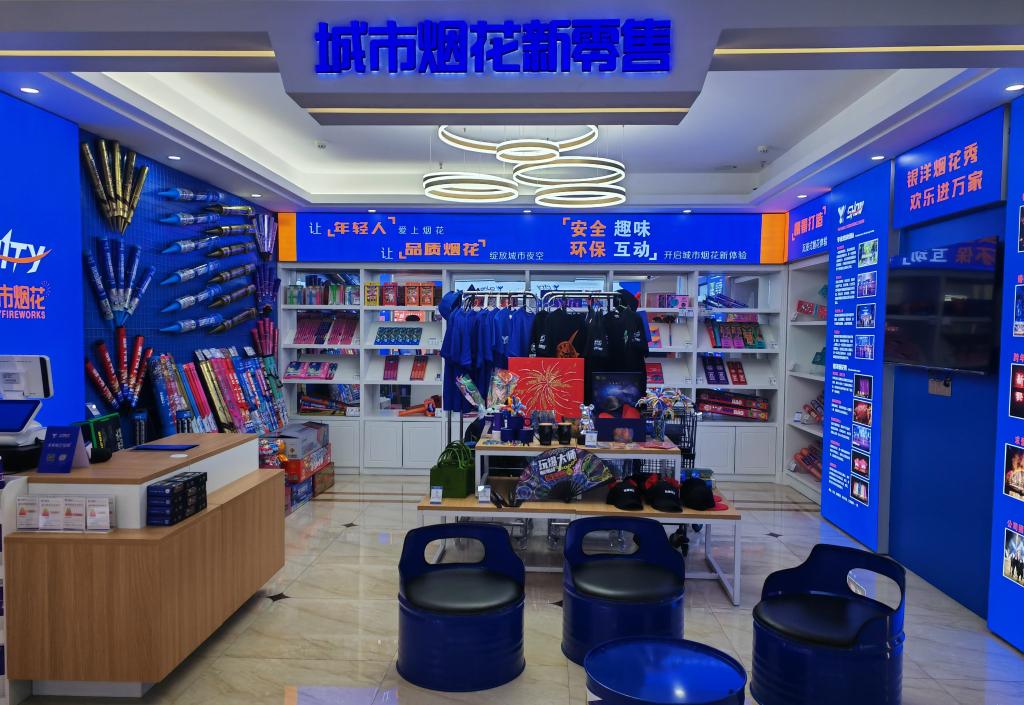 大瑤鎮一家花炮企業(ye) 展示的城市煙花“新零售”門店。新華社記者 白田田 攝