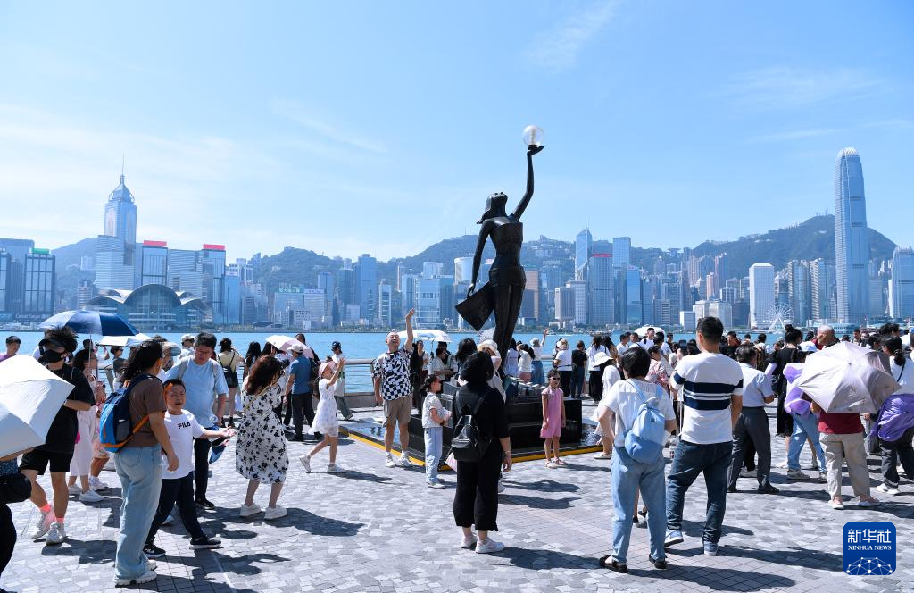 遊客在香港星光大道遊覽(2024年10月3日攝)。新華社記者 陳鐸 攝