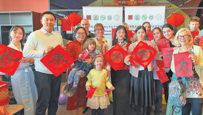 在塞爾維亞(ya) 諾維薩德大學孔子學院近日舉(ju) 辦的春節聯歡活動上,當地學生展示書(shu) 法作品。張夢琪攝