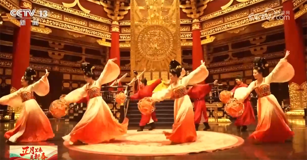 在河南鄭州星河裏唐宮夜宴實景演繹文化園,春節限定節目《元正夜宴》正在精彩上演,遊客可以近距離觀賞打魚燈、掛桃符、吃五辛盤等唐代過年文化。春節期間,每天都有近百場沉浸式古風演繹在這裏上演,遊客穿唐裝、品唐俗、吃唐席,一站式體(ti) 驗傳(chuan) 統年俗。