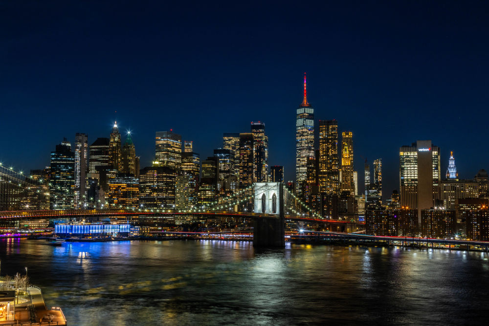 1月28日,美國紐約世界貿易中心一號樓亮起紅色燈光。新華社發(周煥新攝)