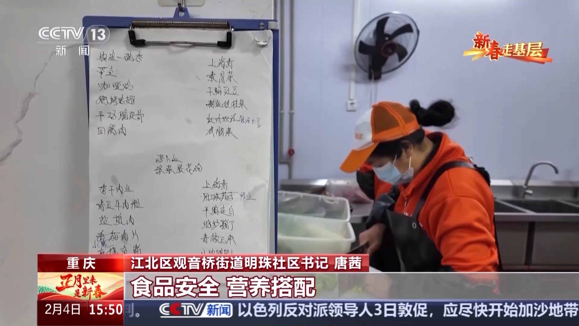 江北區觀音橋街道明珠社區書(shu) 記 唐茜:要解決(jue) 一個(ge) 能夠辦食堂的一個(ge) 地方,這是一個(ge) 硬件上的問題。第二個(ge) 就是誰來辦,首先我們(men) 提出的第一個(ge) 就是要能夠滿足咱們(men) 這邊老人對高品質生活的要求。食品安全、營養(yang) 搭配、健康我們(men) 要排在第一。既然要做我們(men) 就要做得好,要做到老人的心坎上去。