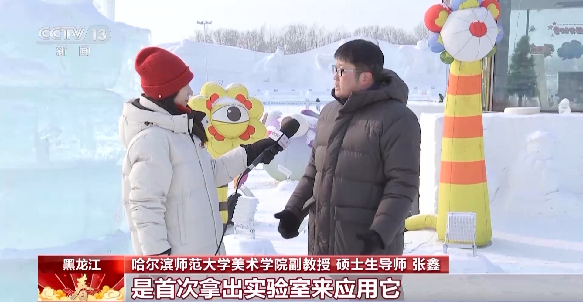 東(dong) 北林業(ye) 大學材料科學與(yu) 工程學院教授、博士生導師 陳文帥:我們(men) 加入一些環境友好型的、植物級的分子,幫助這些色素在冰中非常好地分散,才達到目前我們(men) 這種效果。整個(ge) 過程體(ti) 係是綠色的、可持續的,這是我們(men) 一個(ge) 最核心的理念,我們(men) 開發的這些試劑是環境友好的,當春暖花開的時候冰融化掉,它會(hui) 變成營養(yang) 物質沉積到土壤裏,滋生花草的生長。