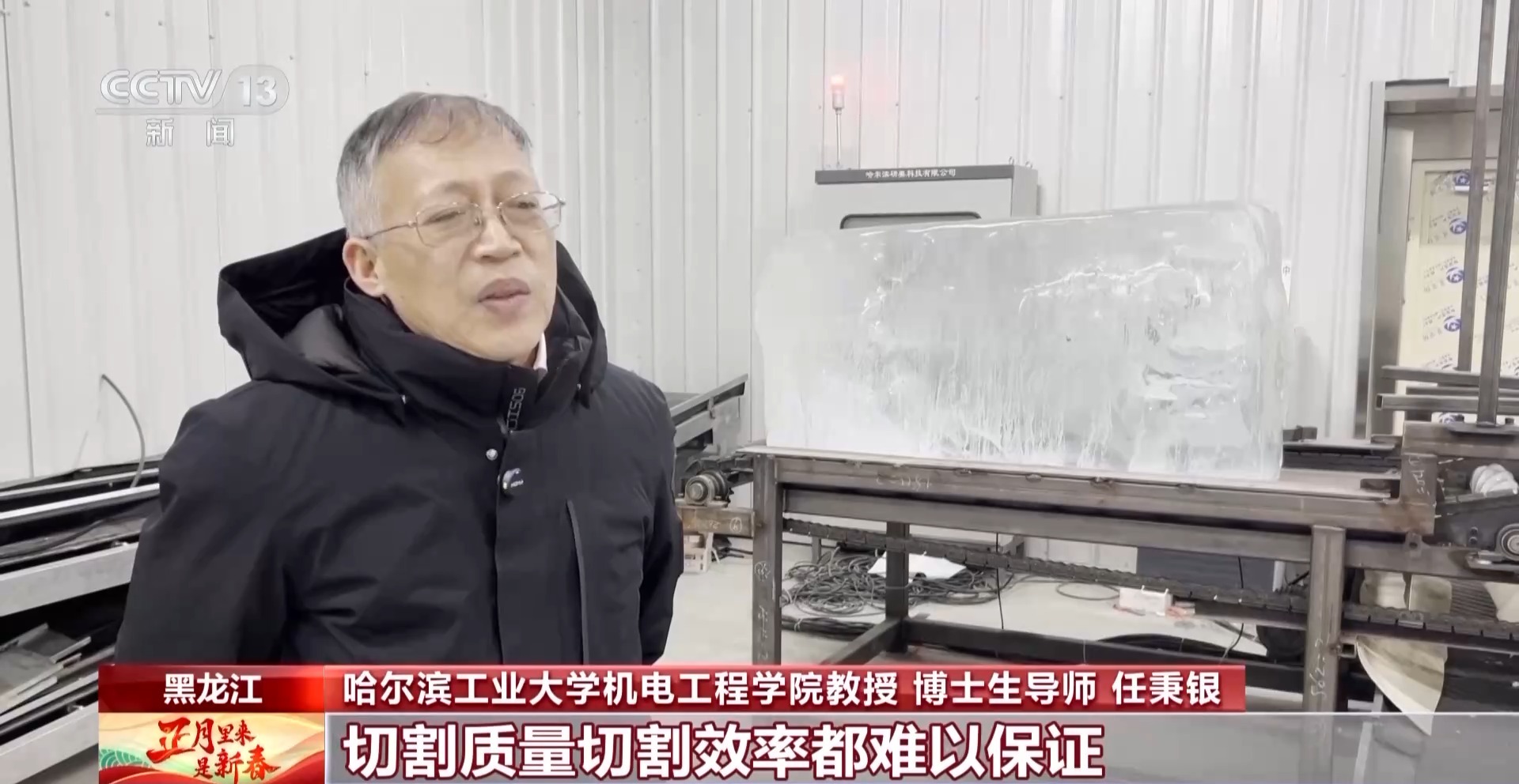 哈爾濱工業(ye) 大學機電工程學院教授、博士生導師 任秉銀:這麽(me) 多年來建冰雕設施用的冰一直都是人工在切,使用手工鋸,切割質量切割效率都難以保證。在這種情況下,對智能自動化生產(chan) 標準冰砌塊的需求十分迫切。