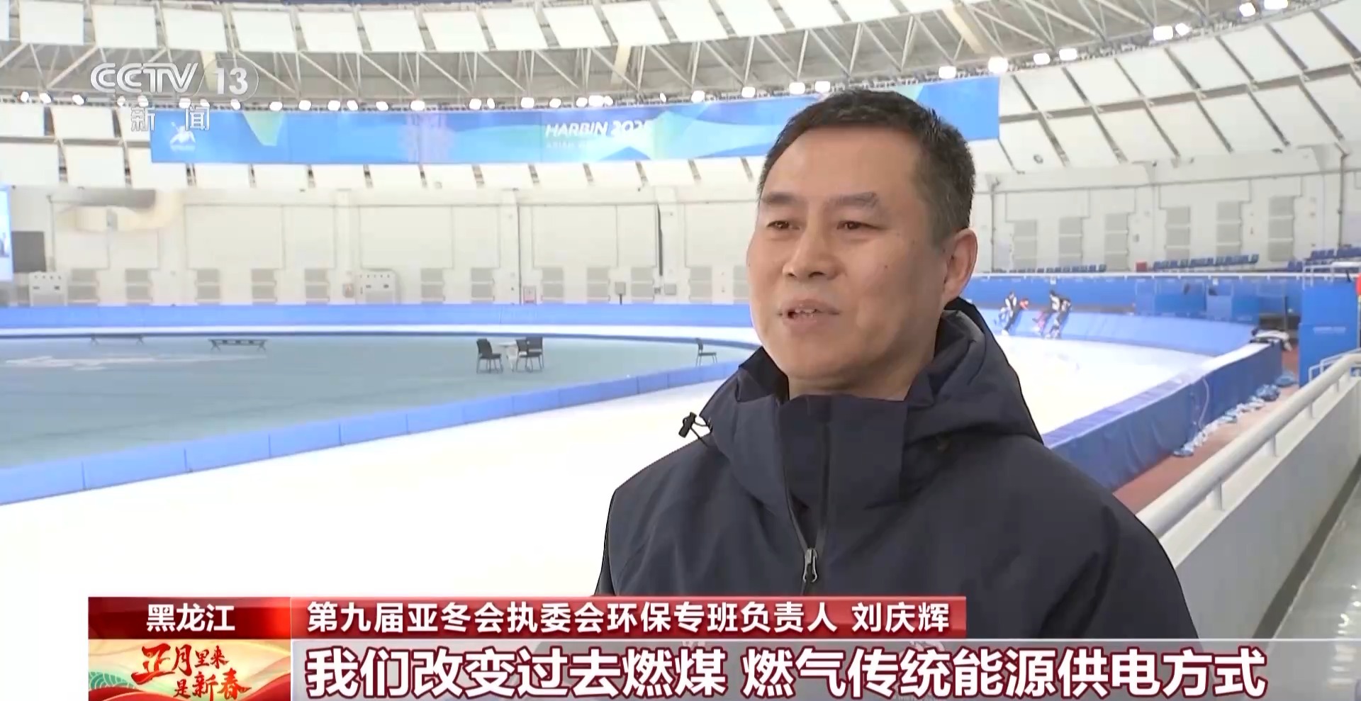 第九屆亞(ya) 冬會(hui) 執委會(hui) 環保專(zhuan) 班負責人 劉慶輝:我們(men) 改變過去燃煤、燃氣傳(chuan) 統能源供電方式,立足我們(men) 黑龍江省本身豐(feng) 富的風力等自然資源,全麵開發使用綠色清潔能源,本地的這些發電企業(ye) 產(chan) 生風能、太陽能等清潔能源將源源不斷地輸入我們(men) 的各個(ge) 場館,全麵滿足我們(men) 賽時各個(ge) 場館的用電需求,在亞(ya) 冬會(hui) 史上是首次實現綠電100%全覆蓋。