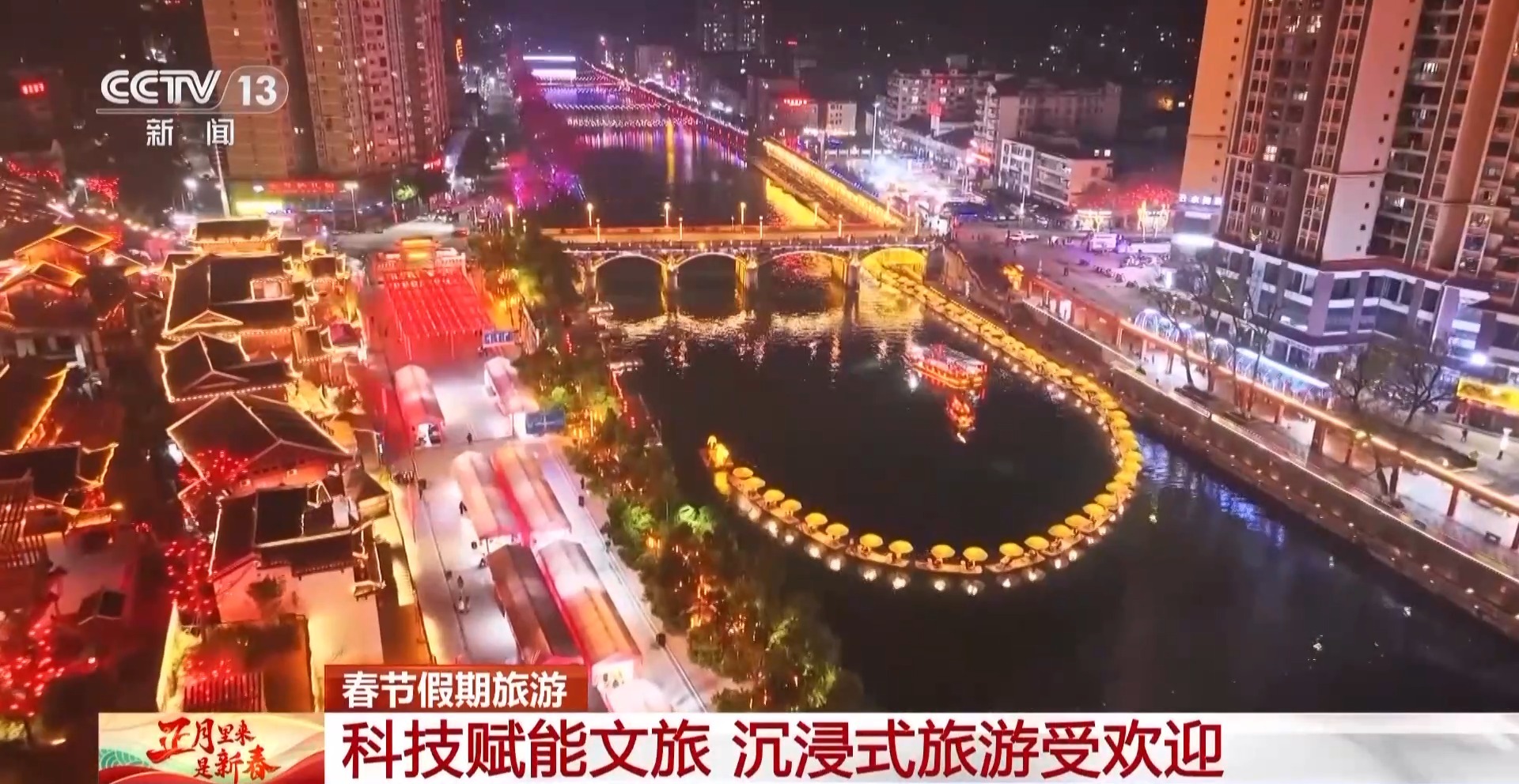 這個(ge) 春節假期,全國各地也開展了豐(feng) 富多彩的夜遊活動,夜間旅遊格外火爆。人們(men) 坐遊船、逛古城,看節日燈火璀璨,享受一幕幕流光溢彩的視覺盛宴。
