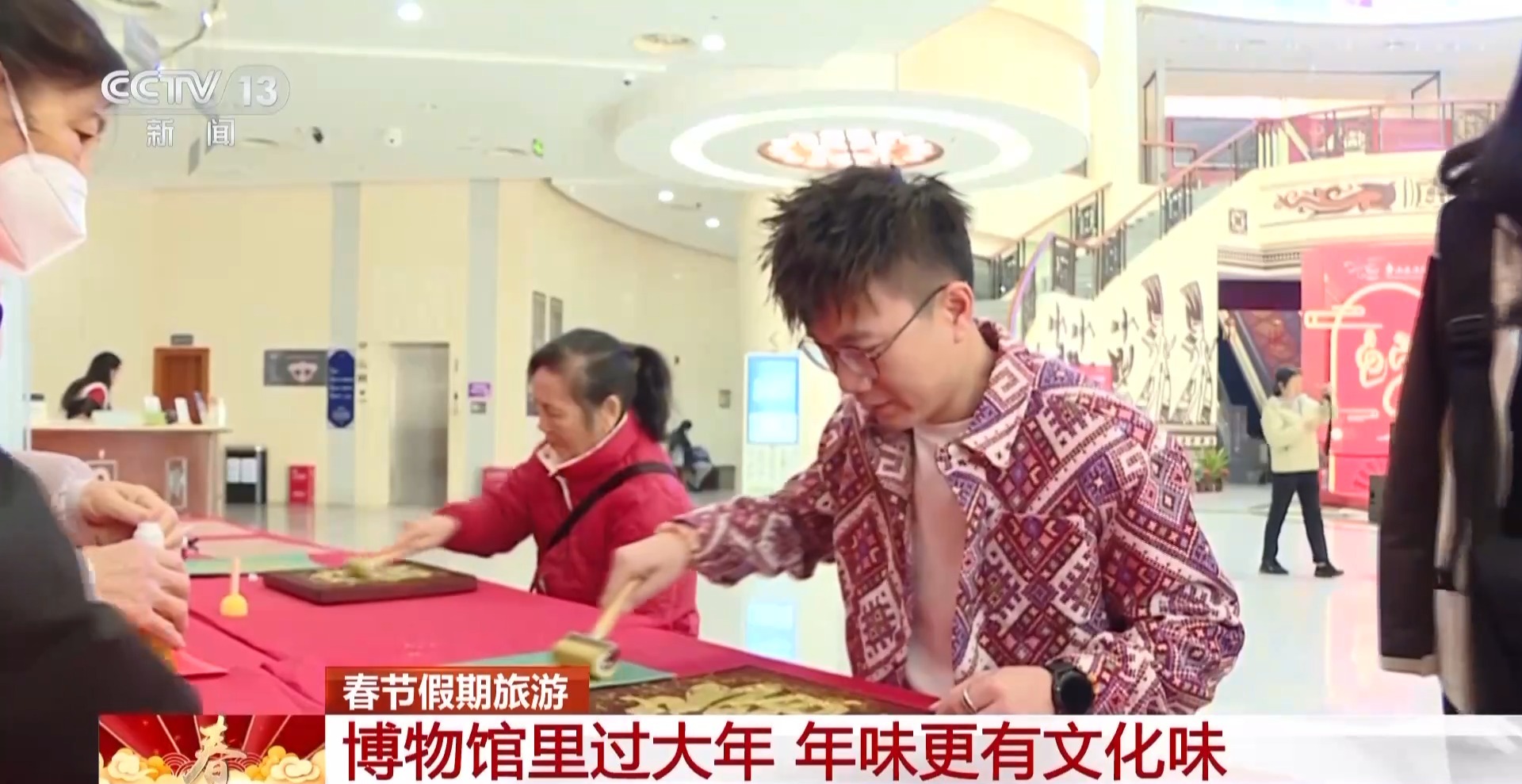 在廣西,民族博物館裏“金蛇行萬(wan) 裏 迎新齊納福”——中國傳(chuan) 統春節民俗係列文化活動火熱開展,“福”字拓印、剪窗花等活動讓觀眾(zhong) 把“福氣”帶回家。在壯族文化展廳,非物質文化遺產(chan) 代表性傳(chuan) 承人現場展示織錦技藝、繡球製作技藝,傳(chuan) 遞對美好生活的願景。
