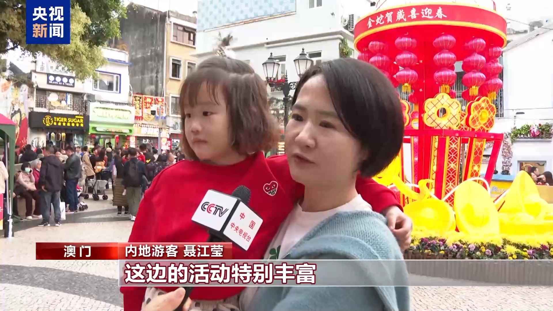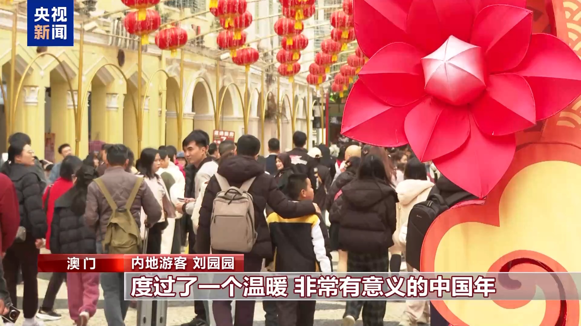 內(nei) 地遊客 劉園園:這是我們(men) 第一次來到澳門,感受到了非常濃厚的節日氛圍,度過了一個(ge) 溫暖、非常有意義(yi) 的中國年,也希望祖國繁榮昌盛,人民幸福安康。