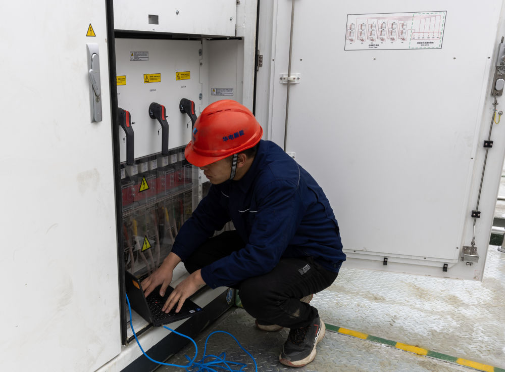 在華電西藏才朋光伏電站升壓站,工作人員正在檢查設備。新華社記者薑帆 攝