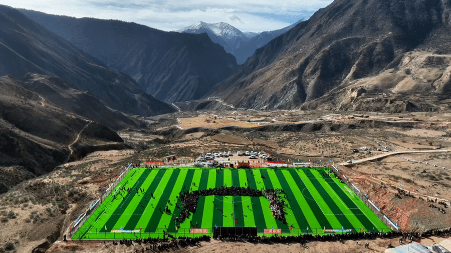 西藏昌都市洛隆縣馬利鎮平均海拔約3700米,高山深穀中,想要找到一片平地實屬不易,但地形條件沒有阻擋當地人對足球的熱愛。