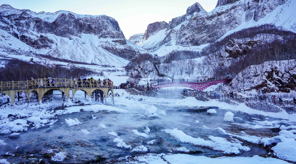 長白山天池以北的延邊州,溫泉室外的樹枝上覆滿積雪,泡池內(nei) 滾燙的地熱源源不斷。伸出腳尖觸水,一股暖意傳(chuan) 遍全身。延邊雲(yun) 集安圖火山泉、龍井氟溫泉、延吉低氘溫泉等多種特色溫泉,吸引海內(nei) 外眾(zhong) 多遊客慕名而來。