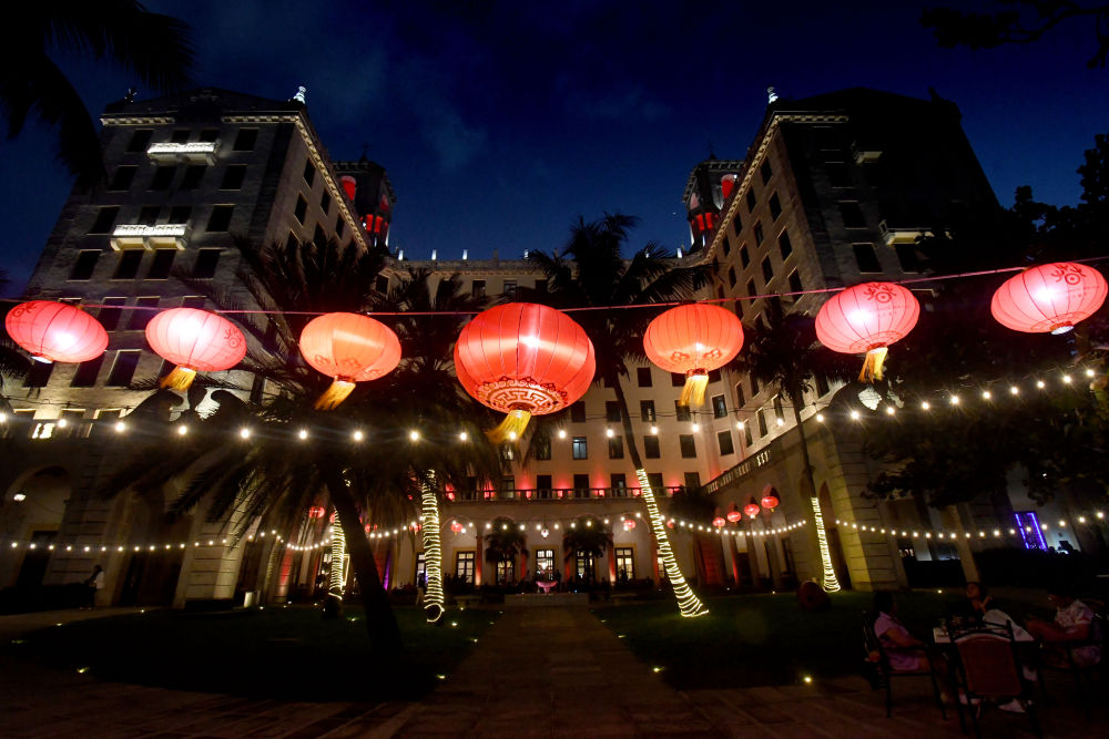 1月28日,古巴首都哈瓦那市中心的古巴國家飯店前懸掛中國燈籠。新華社發(華金·埃爾南德斯攝)