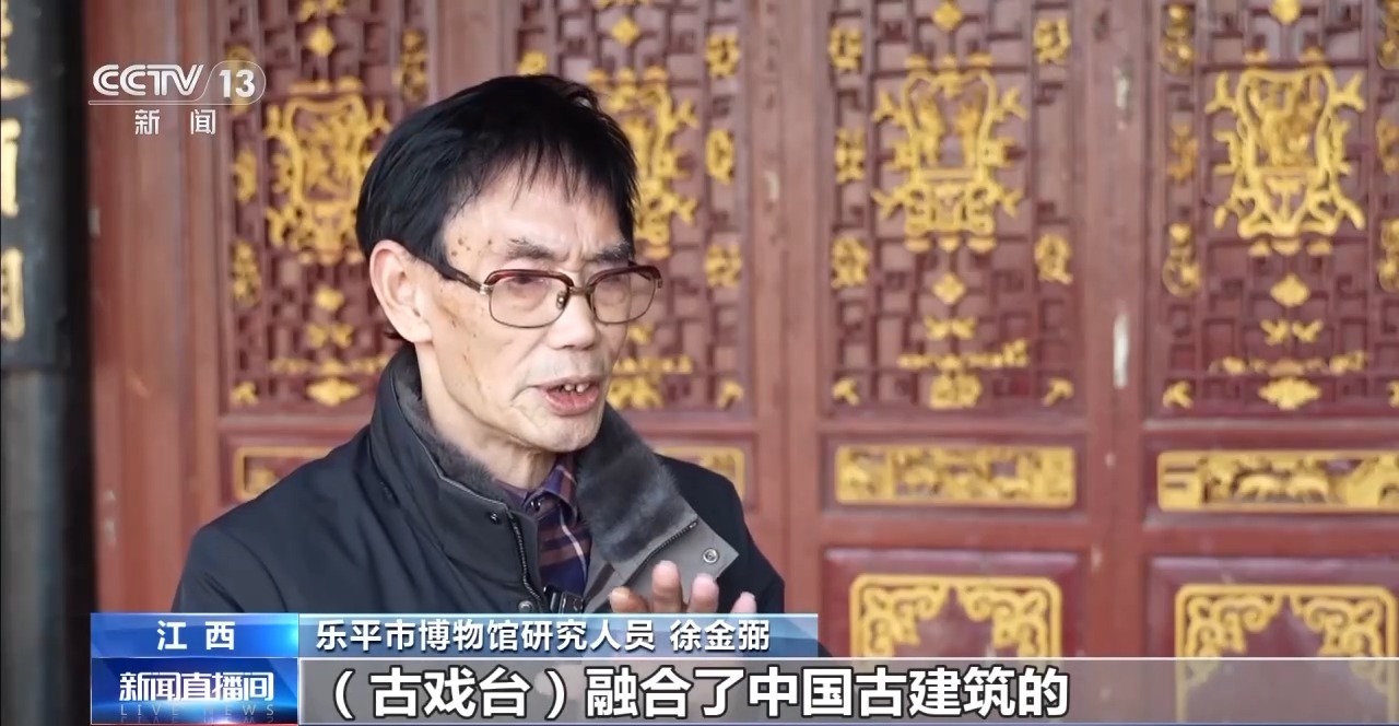 樂(le) 平市博物館研究人員 徐金弼:古戲台融合了中國古建築的基本重要的元素,雕工精湛,把徽派雕刻藝術全部集在一起。