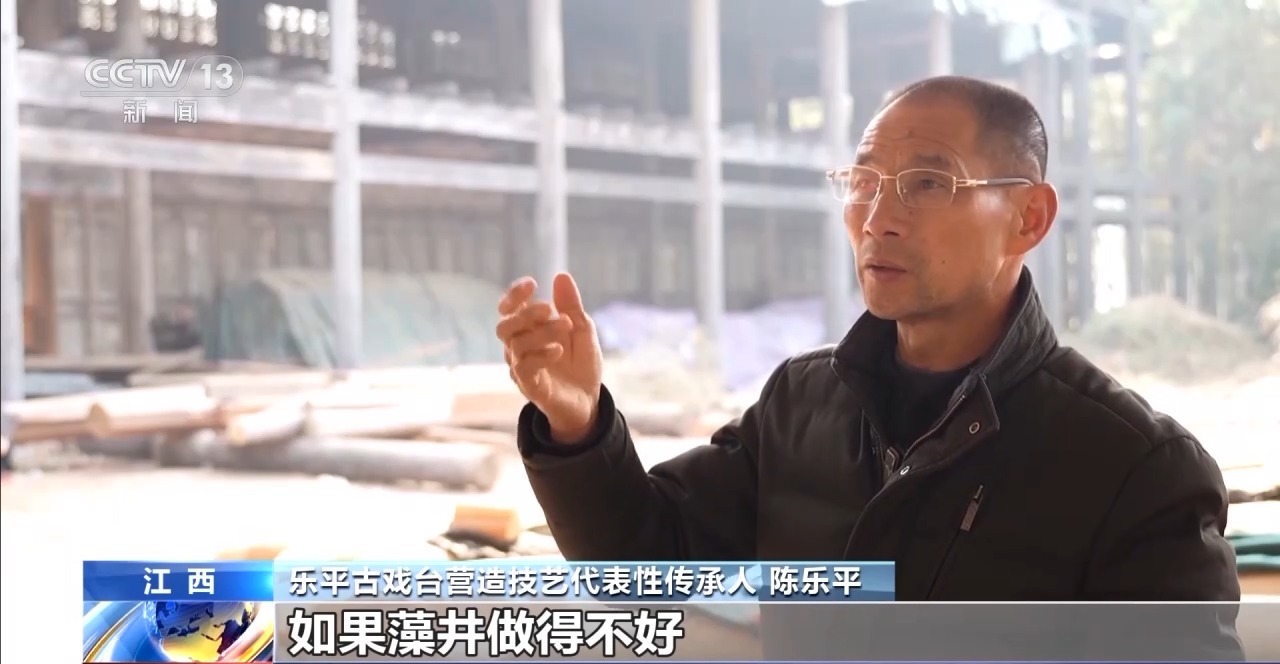 樂(le) 平古戲台營造技藝非遺傳(chuan) 承人 陳樂(le) 平:古代人做螺旋頂,做得越好的,回音就響亮。如果藻井做得不好,古代沒有擴音器,做得不好回音就回不出來。