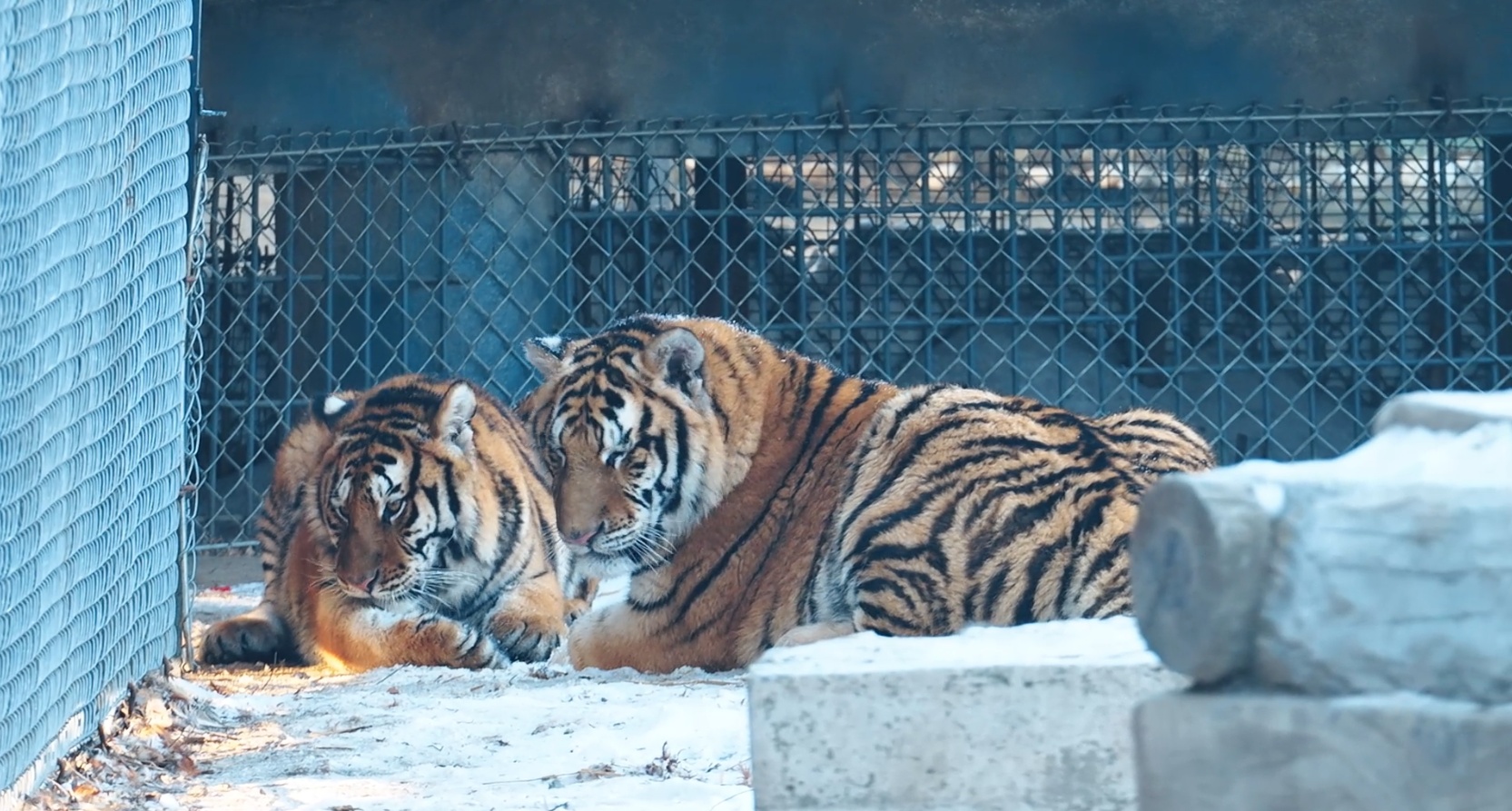 飼養(yang) 員 楊忠亮:它們(men) 兩(liang) 個(ge) 現在是在一歲多快到一歲半了,體(ti) 重也能達到150多斤以上了。我們(men) 給它提供了一個(ge) 比較大的活動場地,讓它們(men) 能活動得比較開闊,能更好的與(yu) 遊客去見麵。這個(ge) 年齡段也是非常愛打愛鬥愛鬧的年齡。遊客隨時來到我們(men) 東(dong) 北虎林園,也會(hui) 隨時的看到它們(men) 和遊客很好的一個(ge) 互動。
